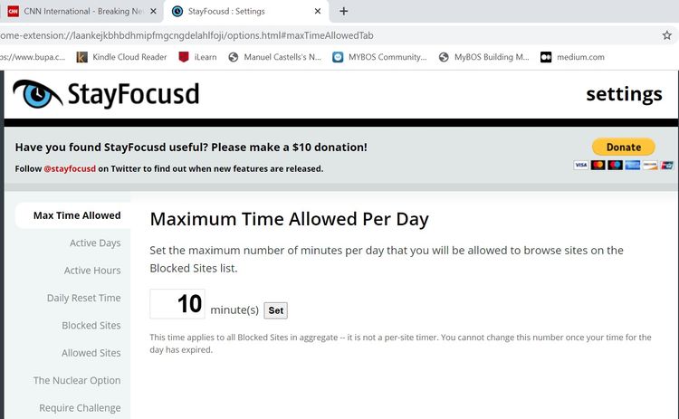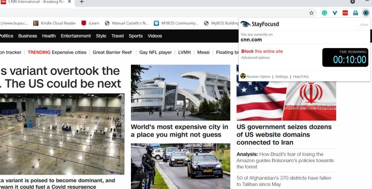 Extensia StayFocusd vă permite să vă concentrați asupra scrisului prin blocarea site-urilor web și a conținutului. Există multe opțiuni pentru a configura cum și când doriți să utilizați această extensie. De exemplu, puteți face clic pe sigla pentru a bloca site-ul web curent.