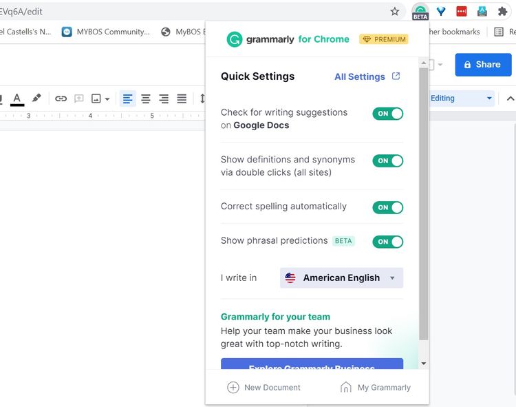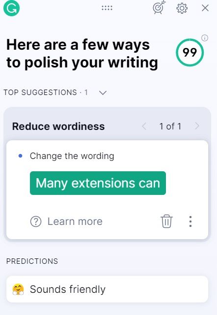 Această extensie verifică textul pentru greșeli de ortografie și de gramatică. Utilizatorii care au cont Free de Grammarly pot accesa funcții limitate, iar utilizatorii premium pot accesa toate funcțiile.