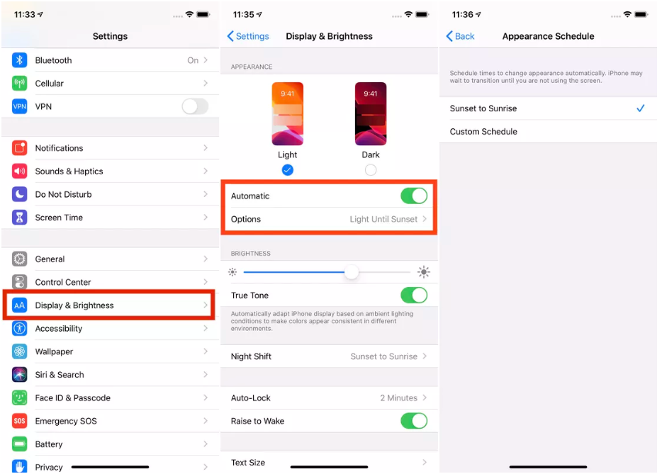 - În modul automat, seara, telefonul va intra în Dark Mode, iar ziua va reveni pe Light Mode.