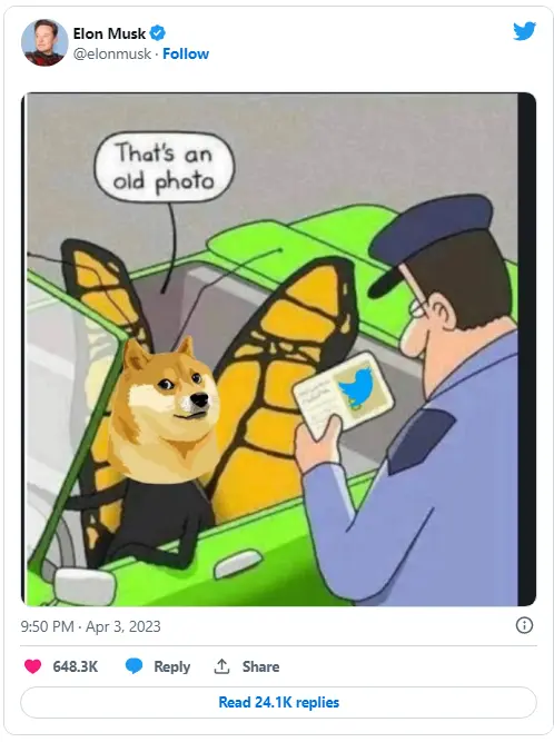 După ce logo-ul Twitter a fost modificat într-o imagine Shiba Inu, Musk a distribuit un meme despre schimbarea celor 133,5 milioane de urmăritori ai săi pe Twitter. Câinele a apărut doar pentru unii utilizatori ai Twitter, inclusiv cei de pe site-ul său.