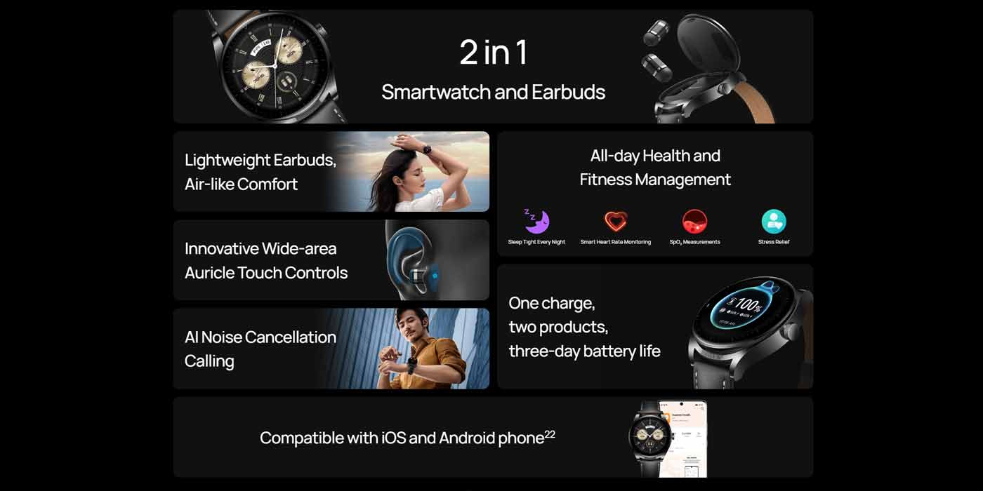 Au dispărut vremurile în care utilizatorii trebuie să poarte o carcasă de încărcare separată pentru căștile lor. Watch Buds de la Huawei sunt concepute pentru a fi acea carcasă de încărcare, toate ascunse sub un smartwatch cu aspect destul de elegant.