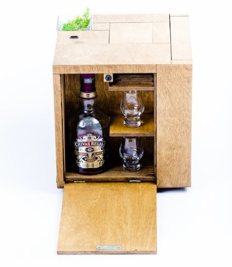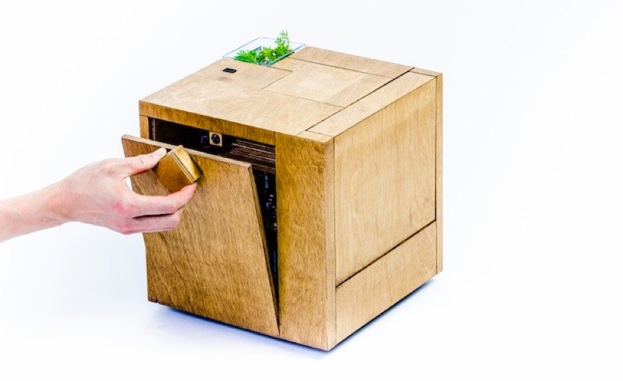 Masa este o piesă de mobilier multifuncțională care poate fi proiectată după dorință. De exemplu, este posibil să incorporati un iPad și să vă încărcați telefonul prin USB. Diferitele compartimente sunt foarte ușor de deschis cu un magnet.