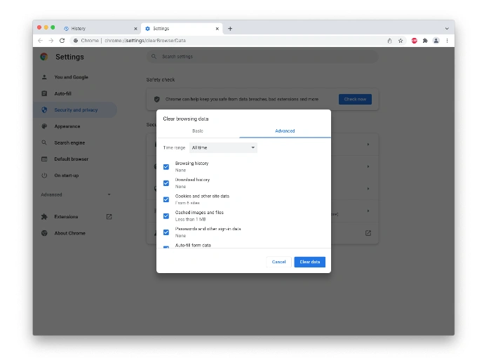 Acestea includ Istoricul de navigare, Istoricul descărcărilor, Cookie-urile și alte date ale site-ului, Imaginile și fișierele stocate în cache, Parolele și alte date de conectare, Datele de completare automată a formularelor, Setările site-ului și datele aplicației găzduite.